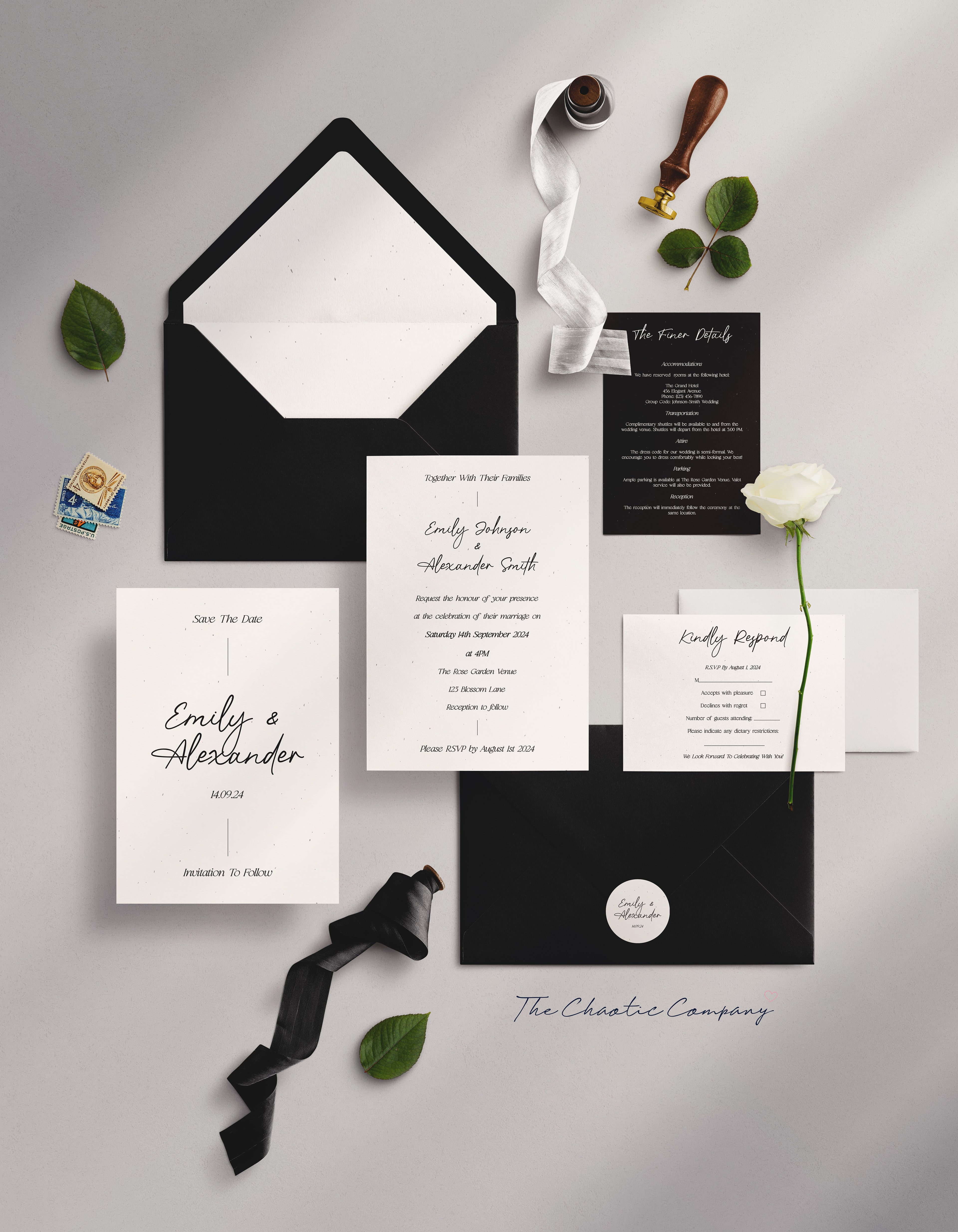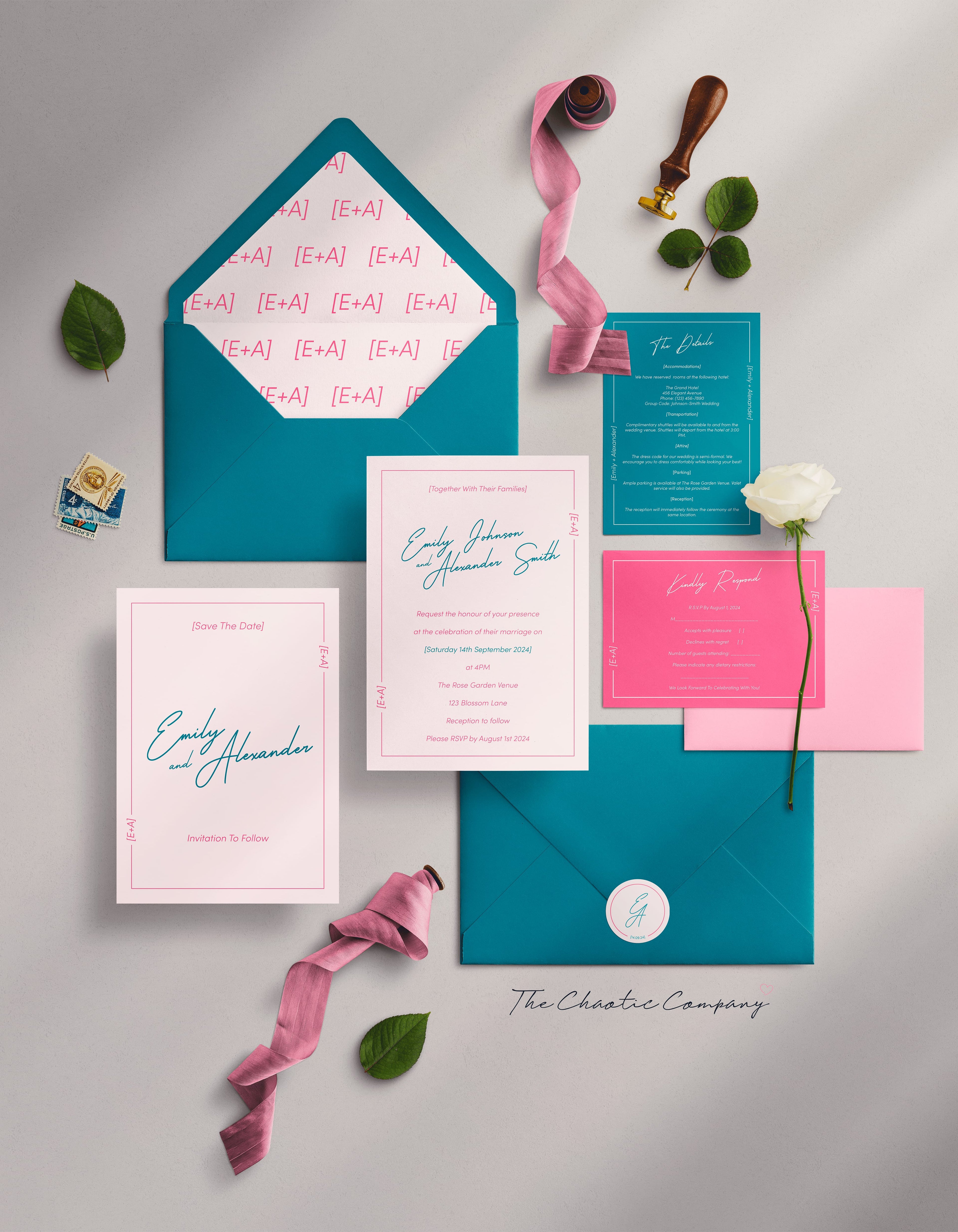 At The Chaotic Company, we turn your wedding chaos into calm, your ideas into beauty, and your personality into print. Whether you’re bold and boho, soft and minimal, or somewhere gloriously inbetween, we’ll design stationery that feels like you.